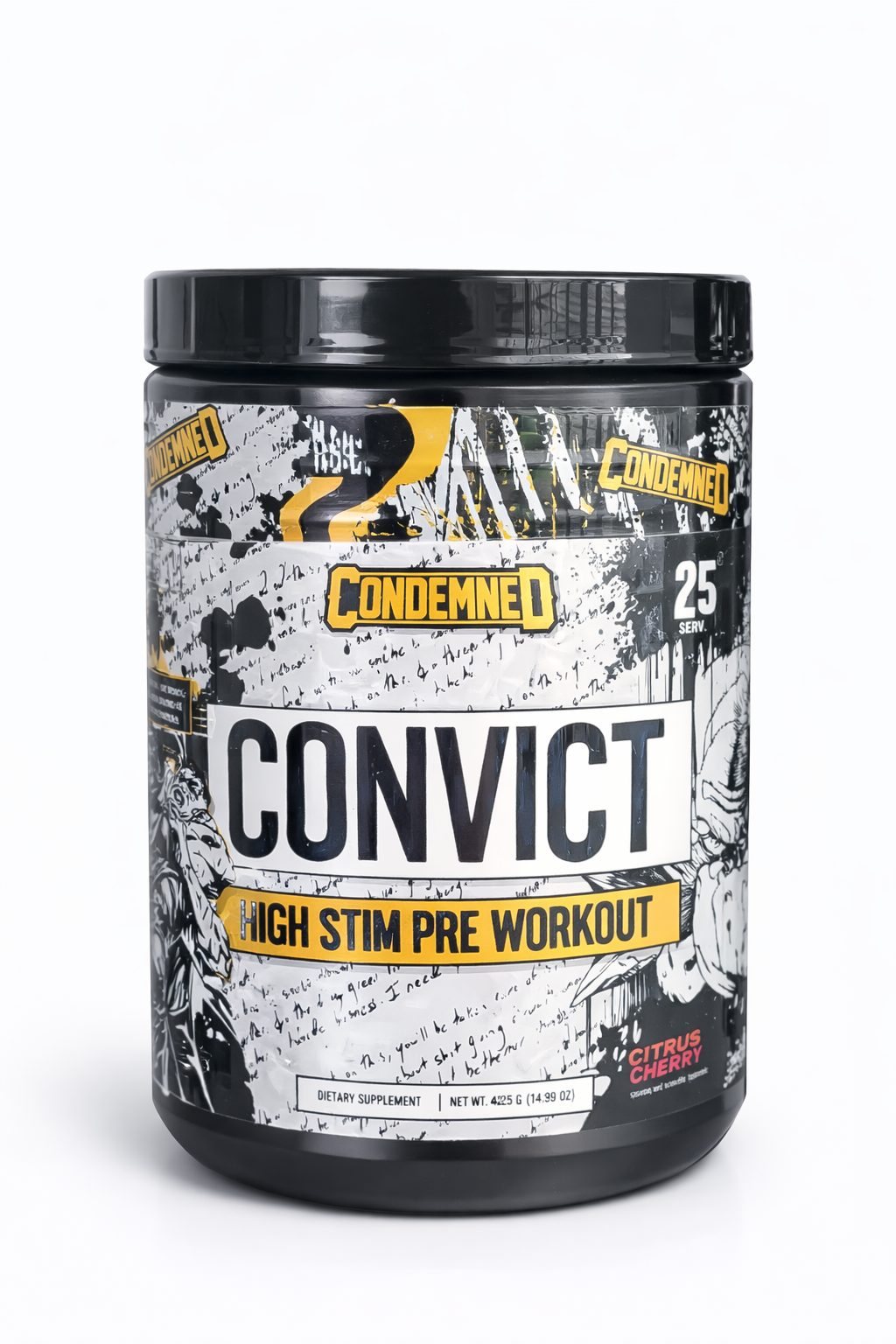 Convict de Condemned Labz es un pre-entreno de alta estimulación diseñado para entrenamientos extremos. Su fórmula ofrece energía intensa, enfoque mental extremo y potencia muscular, ideal para sesiones pesadas donde necesitas llevar tu rendimiento al límite. Perfecto para atletas avanzados que buscan máxima intensidad, fuerza y explosividad en cada entrenamiento.👊🔥